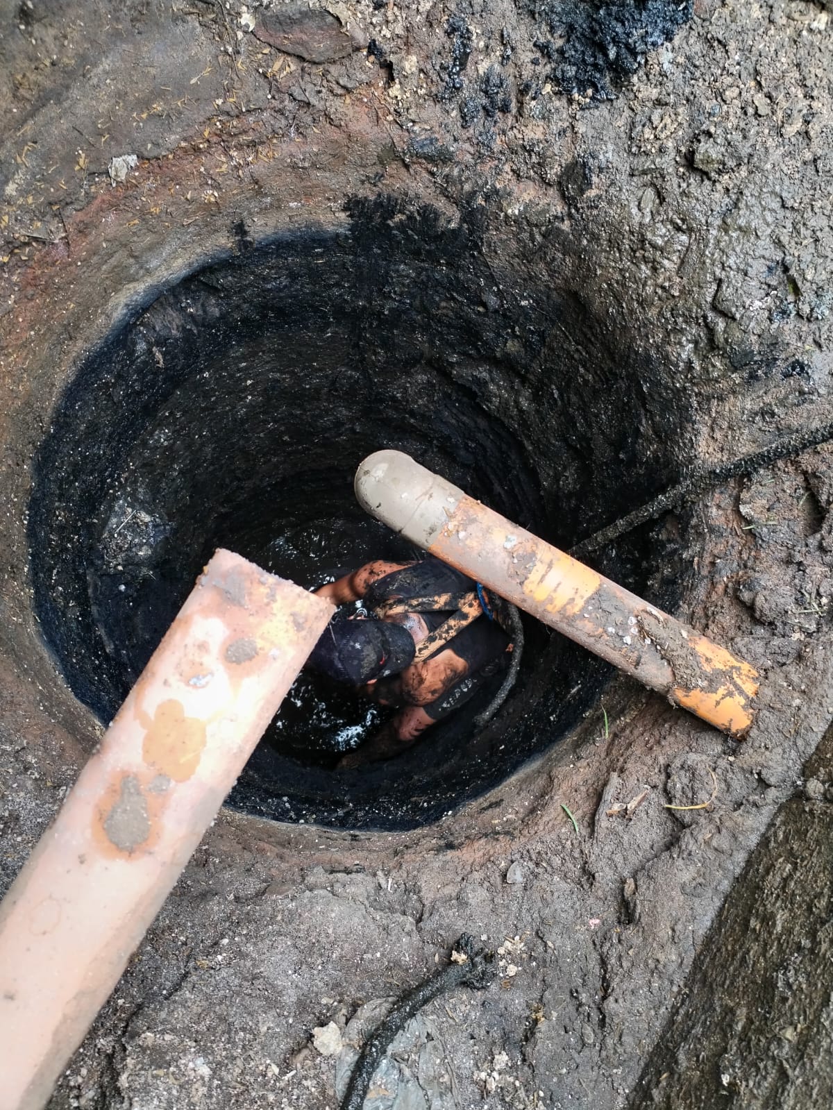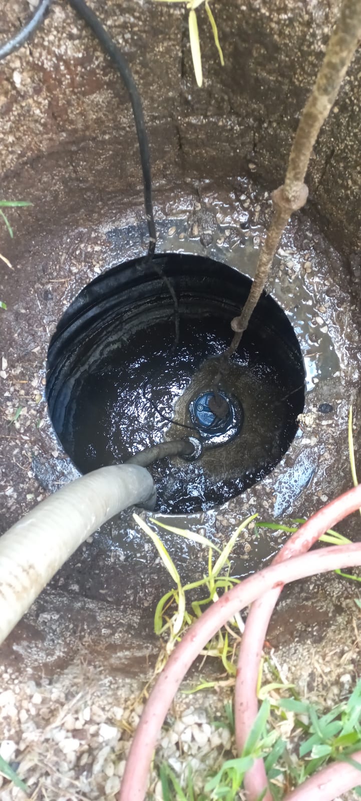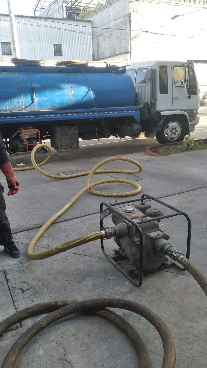 Vaceo de pozos de absorcion con camion cisterna.